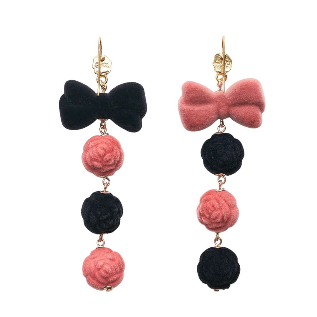 【残り1点】フロッキー ブラック&ピンク リボン イヤリング(ペア)