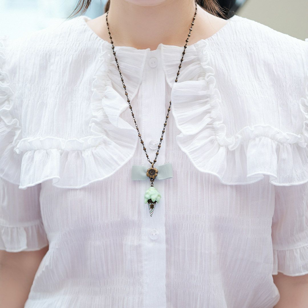ピスタチオ&ストロベリー ジェラート ワッフルコーン ネックレス